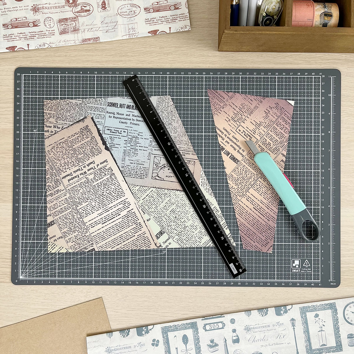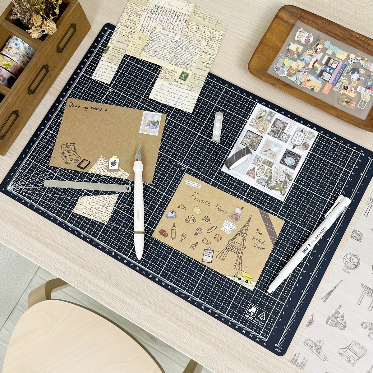 - A light and tiny cutting mat which is recommended for a pocket scrapbook making